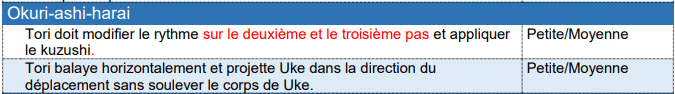 Puis, Tori et Uke se saisissent en garde à gauche dans la position Shizen-hontai pour exécuter «Okuri-ashi-harai» de la même manière que précédemment en projetant Uke sur son côté droit.
